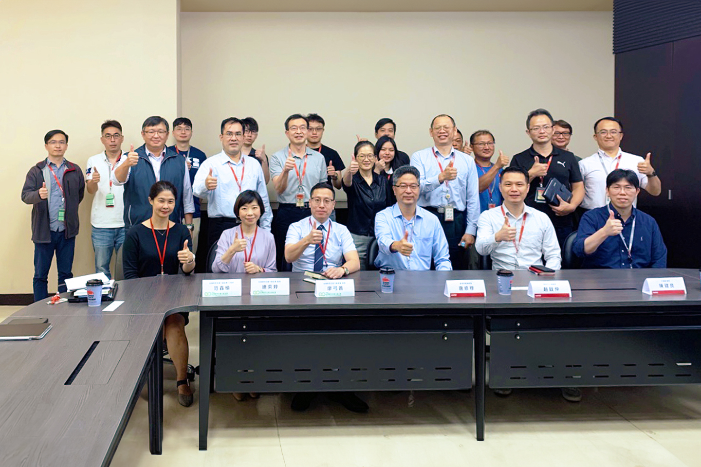 隆达电子董事长(前排右三)、制造中心资深处长(前排右二)、封装厂处长(前排右一)及财团法人台湾绿色生产力基金会专业顾问团队辅导(前排左一~三 )合影。